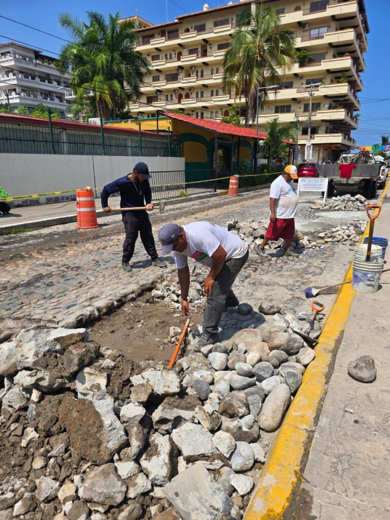El Gobierno del bien, está llevando a cabo importantes trabajos de mejoramiento urbano en Puerto Vallarta, a través de la Dirección de Infraestructura y Obra Pública. Actualmente, se están realizando labores de bacheo y empedrado ahogado en cemento en diversas áreas, como la calle Venustiano Carranza, cerca del Parque Lázaro Cárdenas.