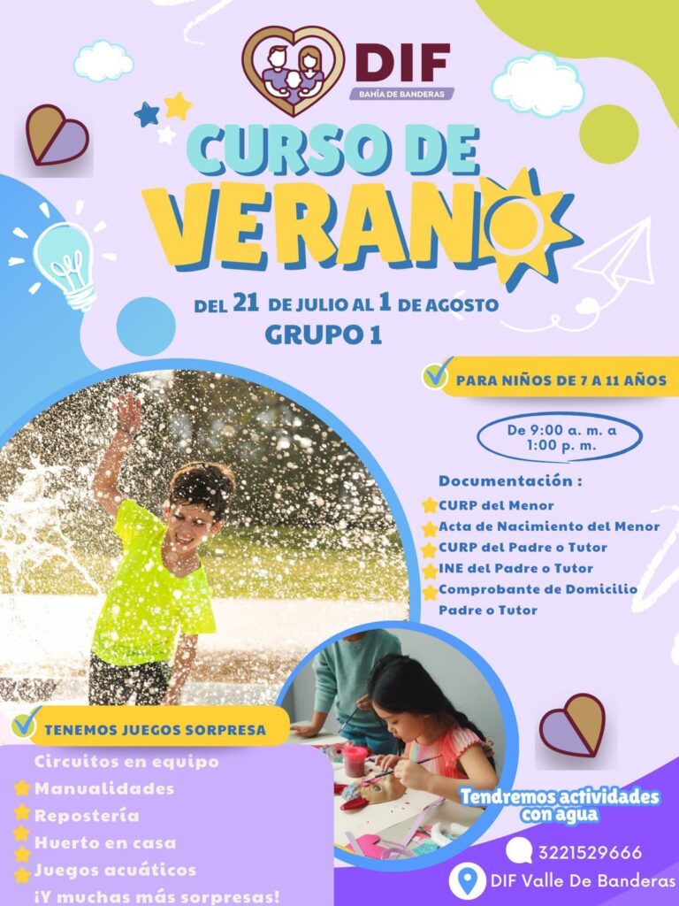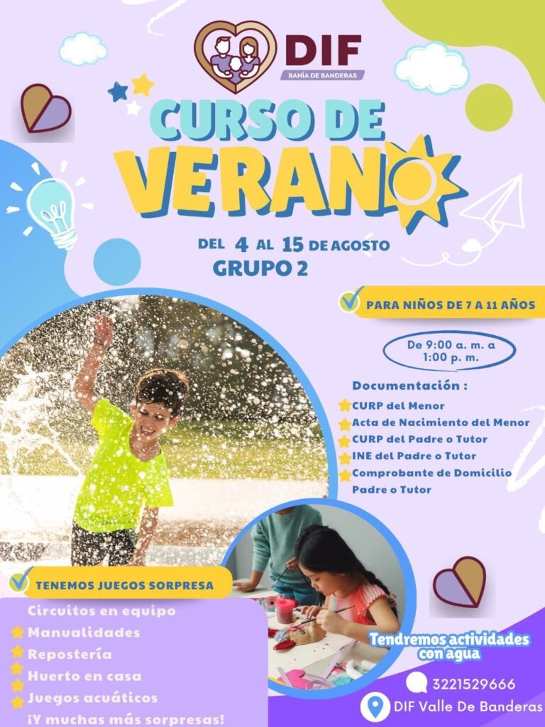 El curso, orientado a la niñez, ofrece un espacio seguro y enriquecedor con actividades creativas y educativas, tales como manualidades, repostería y juegos acuáticos, de lunes a viernes, de 9:00 a.m. a 1:00 p.m. Para inscribirse, se requieren documentos como el CURP y acta de nacimiento del menor, así como identificaciones del tutor. Para más información, se puede contactar al 322 152 96 66 o visitar las oficinas del DIF en Valle de Banderas.