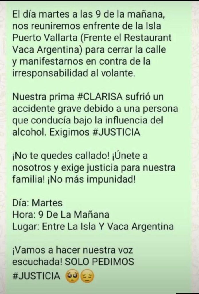 Es probable que esta acción genere opiniones divididas, tanto a favor como en contra, especialmente entre quienes no comprenden la impotencia que sienten los familiares de Clarisa ante la falta de justicia. No se trata de buscar culpables ni de crear divisiones en la sociedad; se trata de generar conciencia. Todos estamos en riesgo de ser víctimas o infractores.